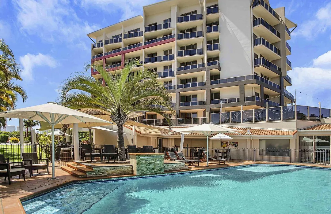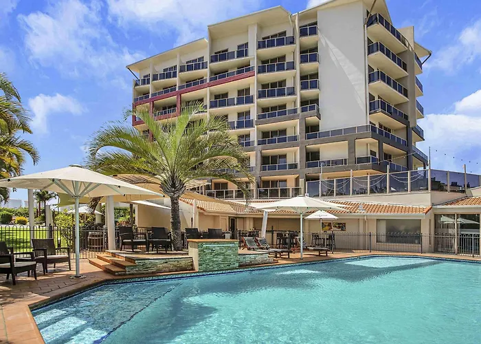 Mantra Mackay is a 4-star hotel offering premium accommodation options with private balconies that provide ocean or Marina Village views. This hotel features an outdoor pool and the Latitude 21 restaurant, serving diverse dining options in a waterfront setting. The hotel is rated 8.1/10 on Booking.com, appealing to both leisure and business travelers.