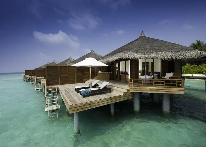 Spacious air-conditioned villas at Kuramathi Maldives provide spectacular sea views and easy access to the beach or gardens. The property offers various villa types, including Beach Villas with Jacuzzis and Water Villas with Jacuzzis, featuring outdoor daybeds and private decks.