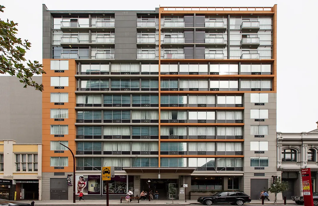 Oaks Perth Hotel features spacious studios equipped with a queen bed, kitchenette, and living area. Each room includes Wi-Fi and Foxtel for entertainment.