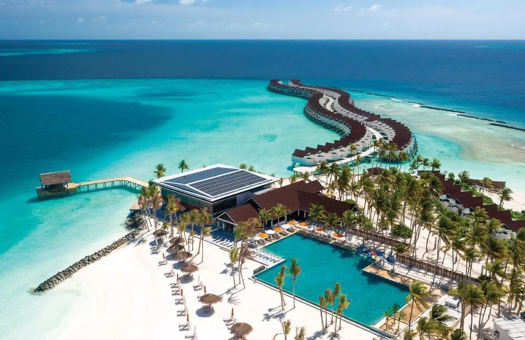 Oblu Xperience Ailafushi is a 4-star hotel offering an all-inclusive experience with free transfers. It features family-friendly accommodations, an outdoor swimming pool, a restaurant, and a fitness center.