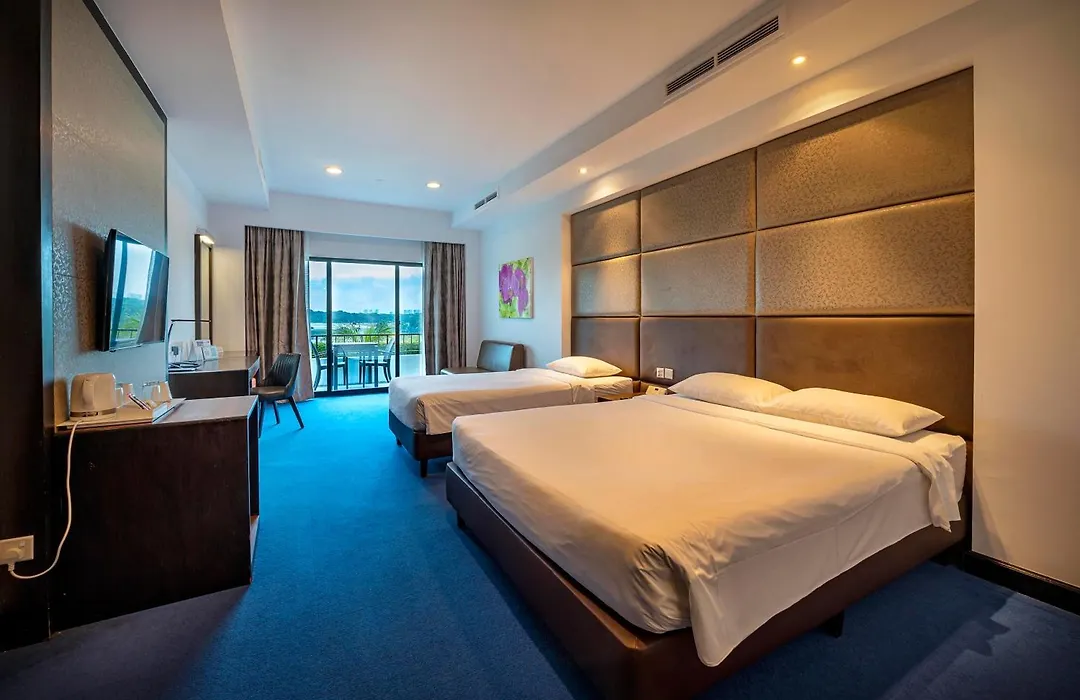 Dining options at Orchid Country Club include Passion Café, which offers local cuisines like Singapore Laksa and international dishes like Chef's Prawn Aglio Olio. The hotel offers a buffet spread across four restaurants, accommodating various culinary preferences.