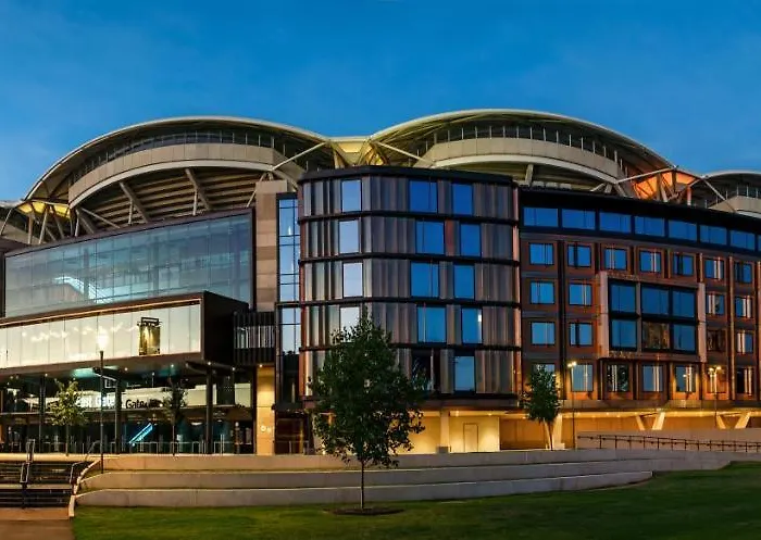 Oval Hotel At Adelaide Oval is a 5-star hotel with a Booking.com rating of 9.1/10, offering contemporary design paired with exceptional dining options. The hotel features floor-to-ceiling windows, bespoke wine offerings, and personalized service. It serves as a venue for various events and provides easy access to the city's attractions.