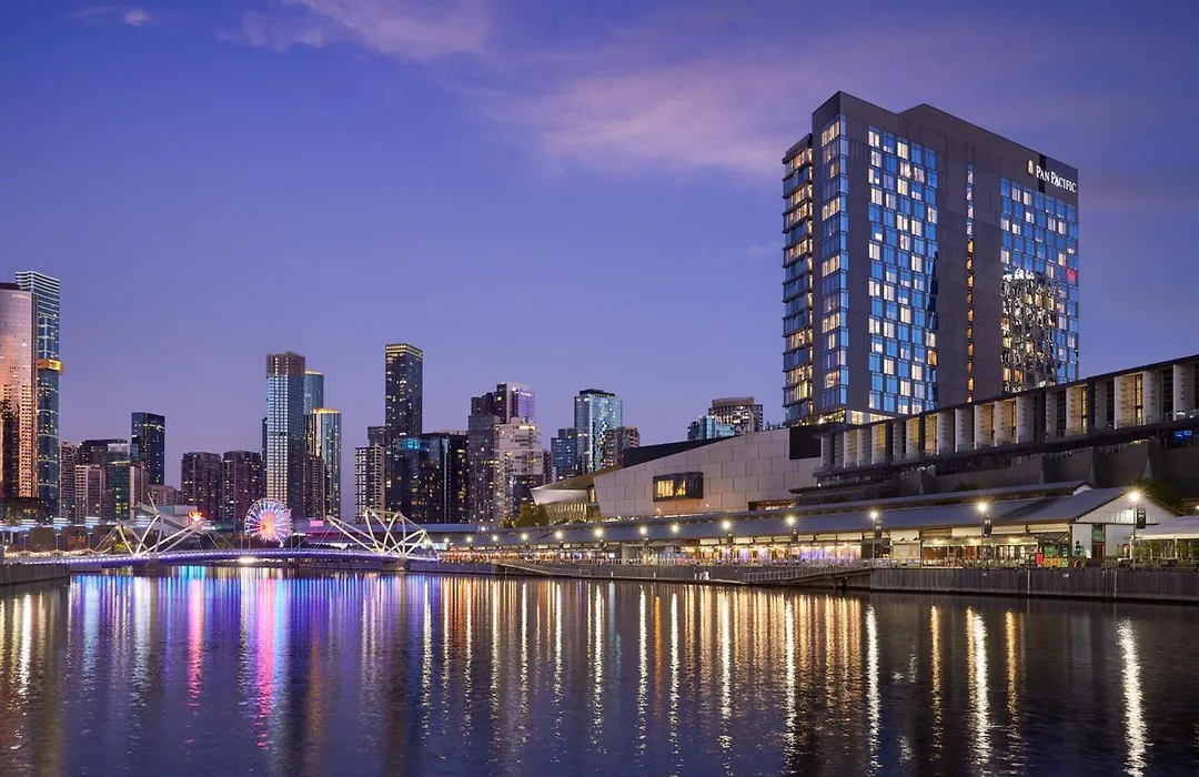 Pan Pacific Melbourne, a 5-star hotel with a 9.0 Booking.com rating, features luxurious accommodation with stunning panoramic views. This business-focused property provides direct access to the Melbourne Convention and Exhibition Centre and is adjacent to the vibrant Southwharf DFO shopping centre and riverside dining options.