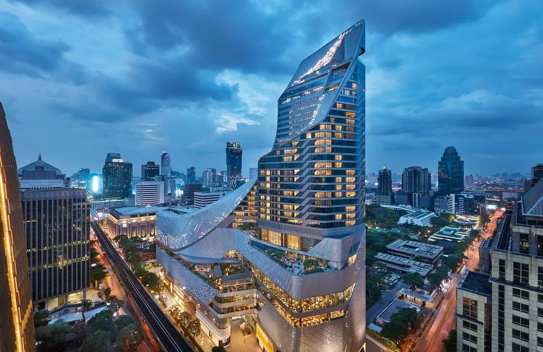 Park Hyatt Bangkok offers a luxury experience with its 5-star accommodations and a Booking.com rating of 9.2/10. The hotel boasts a ninth-floor infinity pool, a state-of-the-art fitness centre, and the Panpuri Spa.