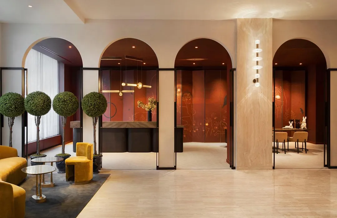 Dining options at Park Lane New York include Calvert's, serving classic American dishes with a modern twist, a Parisian-inspired bar, and Rose Lane offering al fresco dining. The rooftop lounge, Darling, features craft cocktails and stunning views, making it ideal for evenings. Breakfast is served daily and includes made-to-order selections and grab-and-go options.