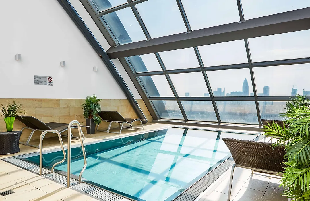 Each of the 434 rooms and suites includes modern amenities such as free high-speed Wi-Fi and high-quality bedding with individually requested mattress comfort settings. Some rooms have panoramic views of Frankfurt's skyline and the Taunus hills, located on the higher floors of the hotel.