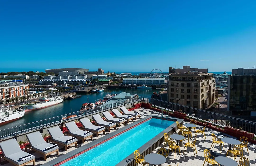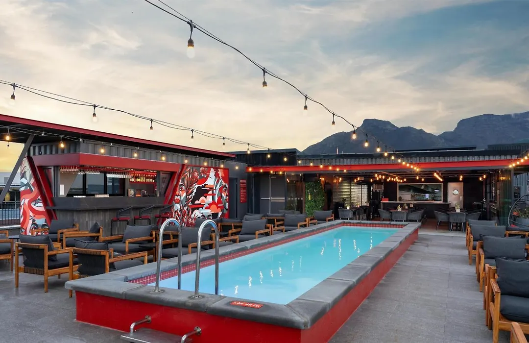 The hotel features the OUIBar + KTCHN for all-day dining, which highlights Cape Town's vibrant craft food and drink scene. Guests can enjoy dishes and refreshing drinks on the terrace or lounge poolside at the rooftop bar.
