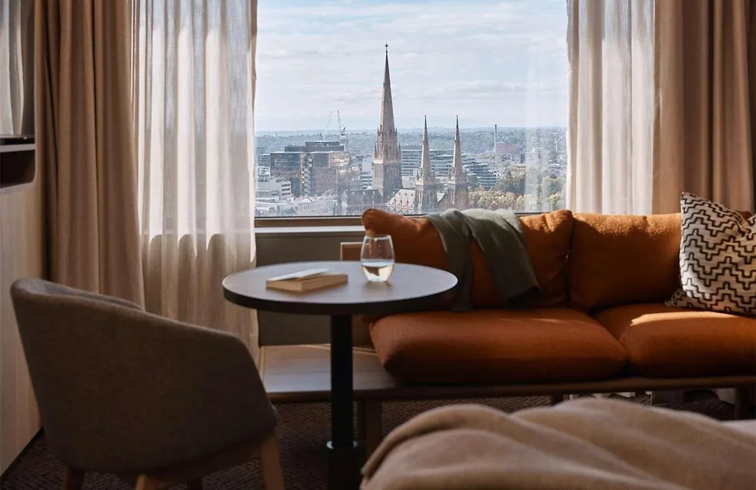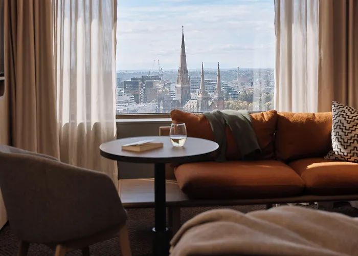 Rydges Melbourne, a 5-star hotel with an 8.9/10 rating on Booking.com, features modern rooms inspired by the Australian landscape along with a heated rooftop pool and an on-site restaurant. Located in Melbourne CBD, this accommodation provides convenient access to local dining and shopping options.