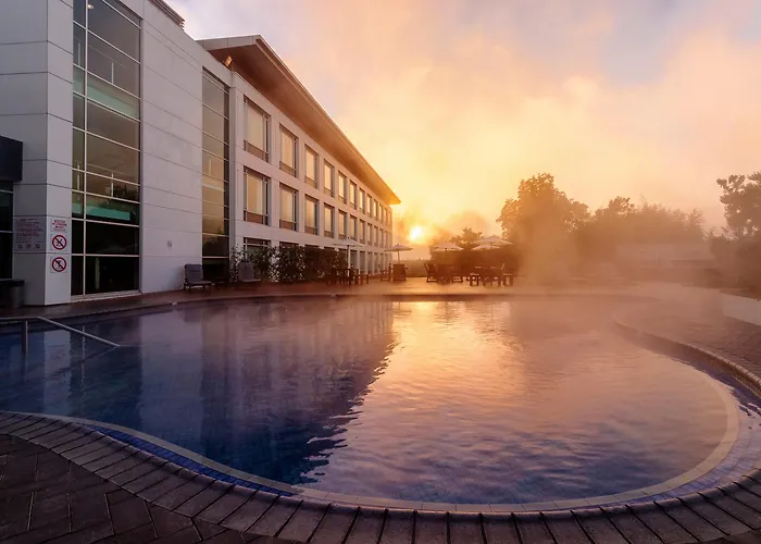 Rydges Rotorua, rated 7.8/10 on Booking.com, features a year-round geothermally heated outdoor pool and an on-site restaurant. This 4-star Rotorua hotel offers modern accommodations with convenient amenities.