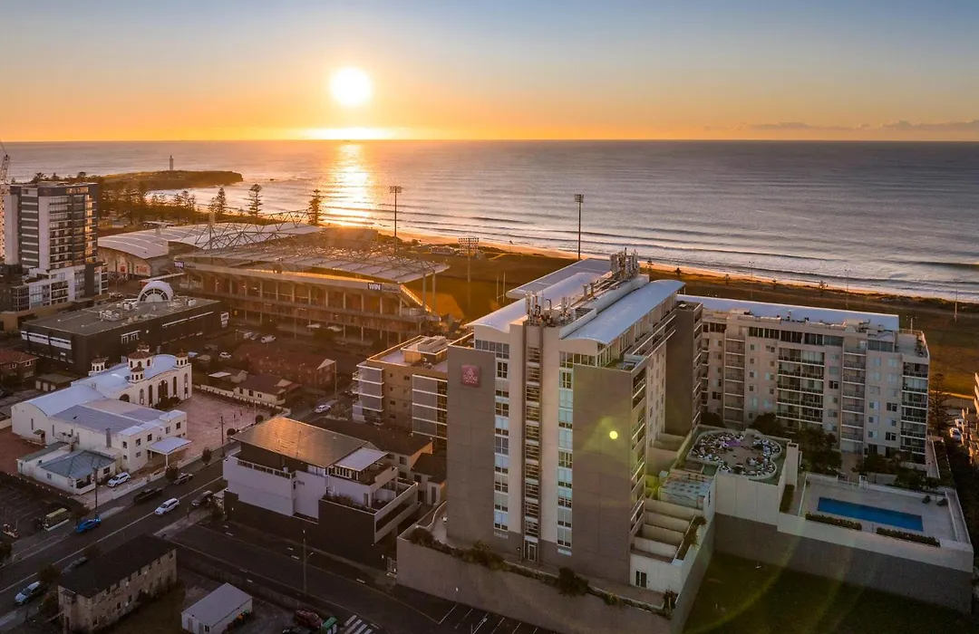 Sage Hotel Wollongong is a 4-star hotel rated 8.2/10 on Booking.com, featuring contemporary guest rooms and an outdoor pool. The hotel includes amenities such as a 24-hour gym and on-site dining options, situated adjacent to WIN Sports & Entertainment Centre.