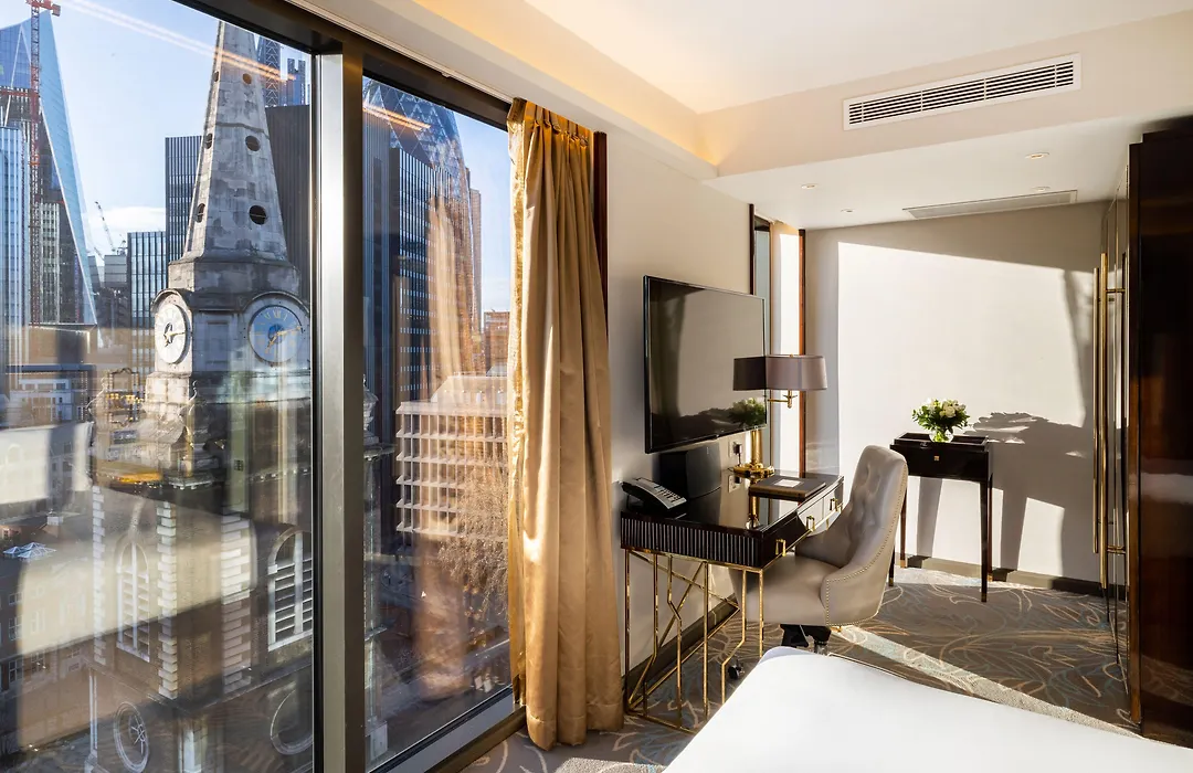 On-site, the hotel's dining options include VQ, a 24-hour restaurant serving modern British cuisine. The surrounding area features popular restaurants like Duck & Waffle and Sushisamba, allowing guests to explore diverse culinary experiences just a short walk away.