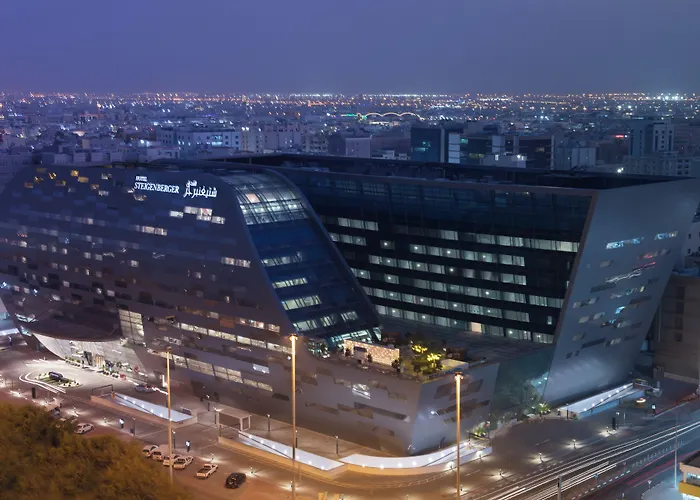 Steigenberger Hotel Doha is a 5-star hotel featuring advanced wellness facilities and modern accommodations in the heart of the commercial district on Airport Road Al Matar Street. This flagship hotel combines German and Qatari hospitality and offers amenities like a grand ballroom and an outdoor swimming pool.