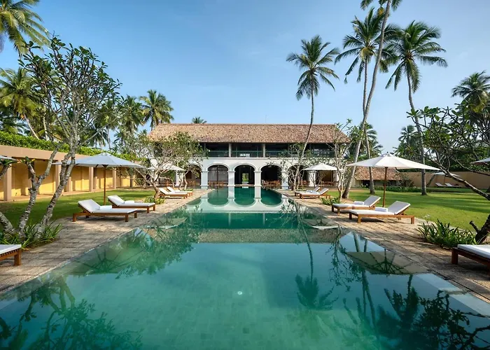 Kayaam Wellness offers 5-star accommodations with a high guest rating of 9.5/10 on Booking.com. This Tangalle hotel features amenities including an outdoor swimming pool, an indoor pool, a hot tub, and free private parking.