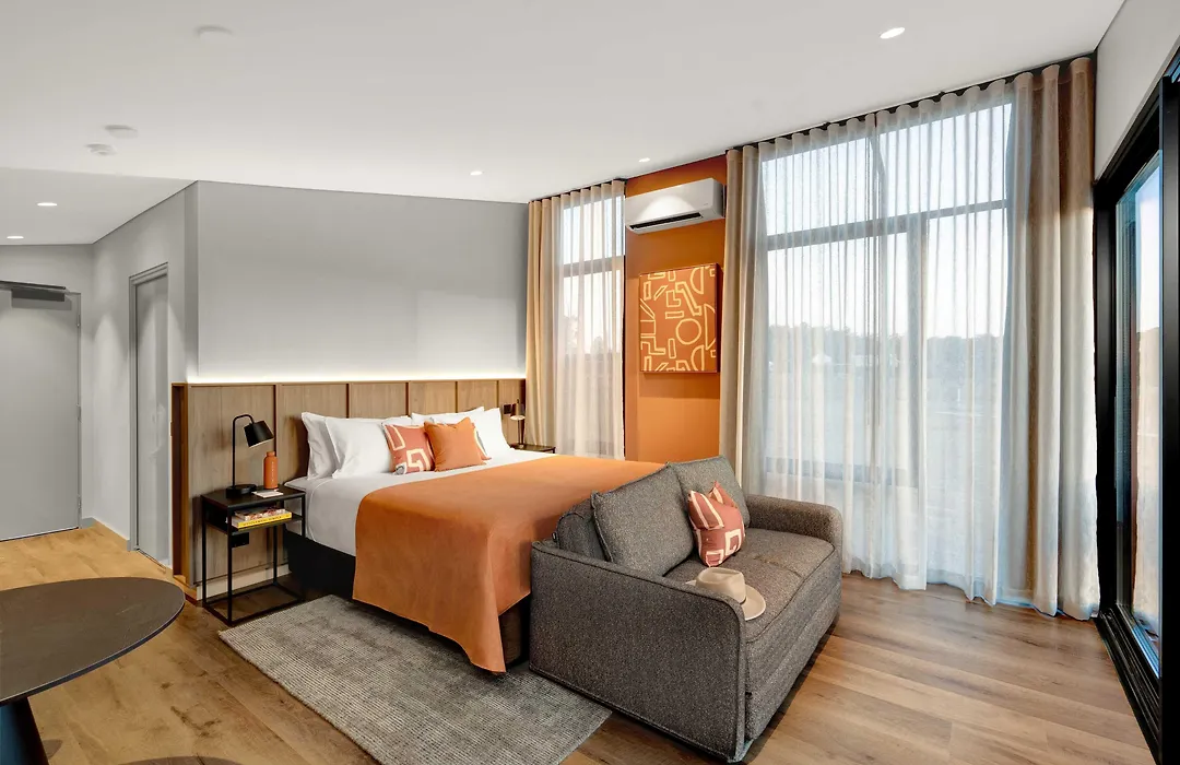 Each of the 60 studio retreats is equipped with air conditioning, a refrigerator, microwave, coffee machine, and free toiletries. Rooms also feature outdoor terraces offering views of the mountains and vineyards, while accessible options are available.