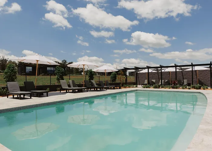 The Lane Retreat features premium studio accommodations set amid a 15-hectare vineyard, offering panoramic views of the Broken Back Range. This 4-star Pokolbin hotel caters to guests with amenities like outdoor swimming pools, free parking, and gourmet breakfast provisions delivered daily.