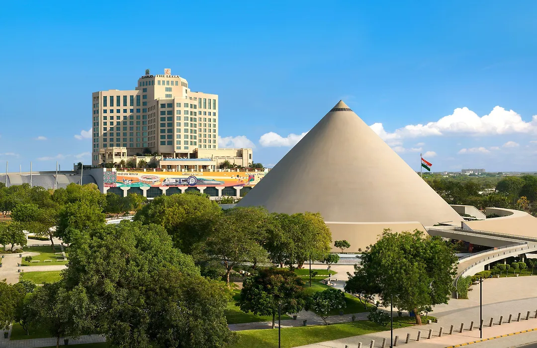 For leisure, The Leela Gandhinagar offers a fitness center, spa, and an infinity pool providing scenic views of the Sabarmati. The hotel is also conveniently located with access to business parks like GIFT City and Infocity. Nearby attractions include Akshardham Temple and Indroda Nature Park.