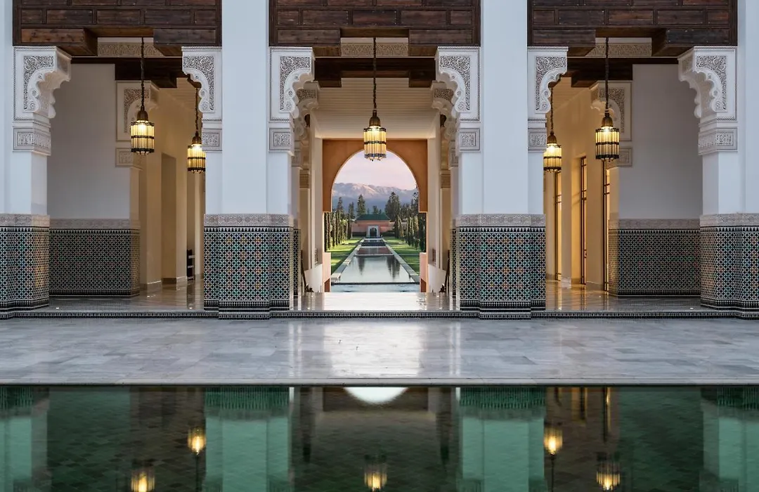 Oberoi Marrakech offers a 5-star experience with luxurious accommodations set amidst beautifully landscaped gardens and stunning views of the snow-capped Atlas Mountains. The hotel features a glass-cube spa, outdoor swimming pool, and a range of dining options. Rated 9.8/10 on Booking.com, this Gzoula hotel emphasizes cultured luxury.