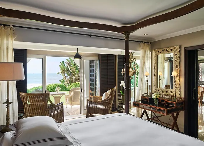 The Oyster Box offers 86 individually decorated rooms, suites, and villas, featuring options such as sea-facing cabanas and luxury suites with private plunge pools. Each accommodation includes amenities like air-conditioning, complimentary Wi-Fi, and elegant furnishings to enhance guest comfort.