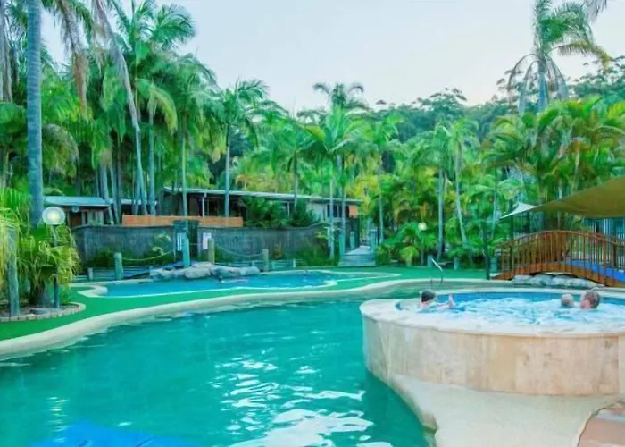 The Palms At Avoca is a 4-star Avoca Beach hotel featuring self-catering accommodations ideal for families and groups. Notable amenities include two resort swimming pools, a heated spa, and a games room with arcade options.