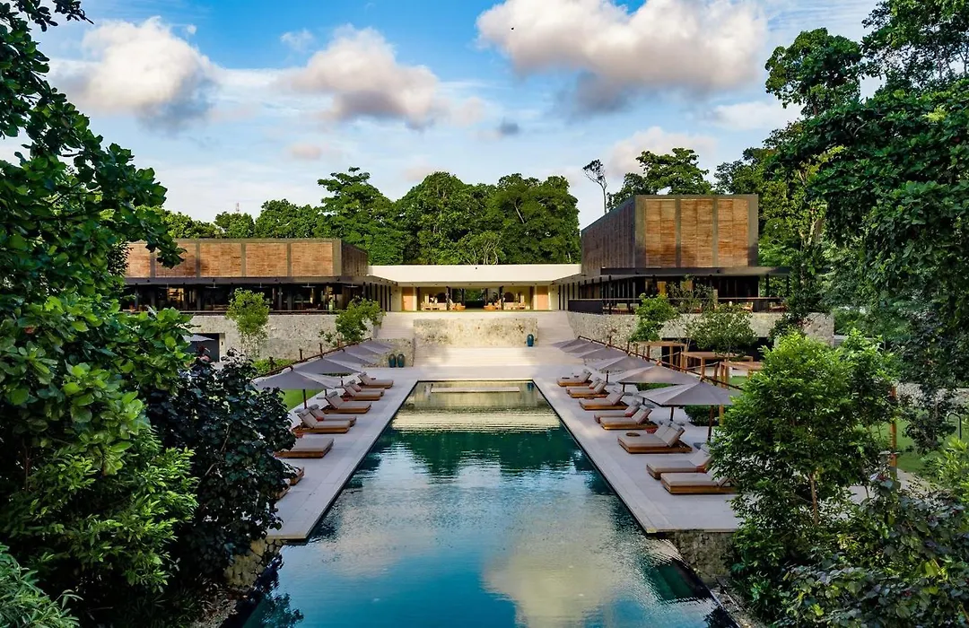 Accommodations at The Sireya Desaru Coast include spacious suites with options like the Grand Suite featuring a private pool and the Rainforest Junior Suite with a plunge pool. Each suite is equipped with a tea and coffee maker, seating area, and luxurious bathrooms with standalone baths and tropical showers.