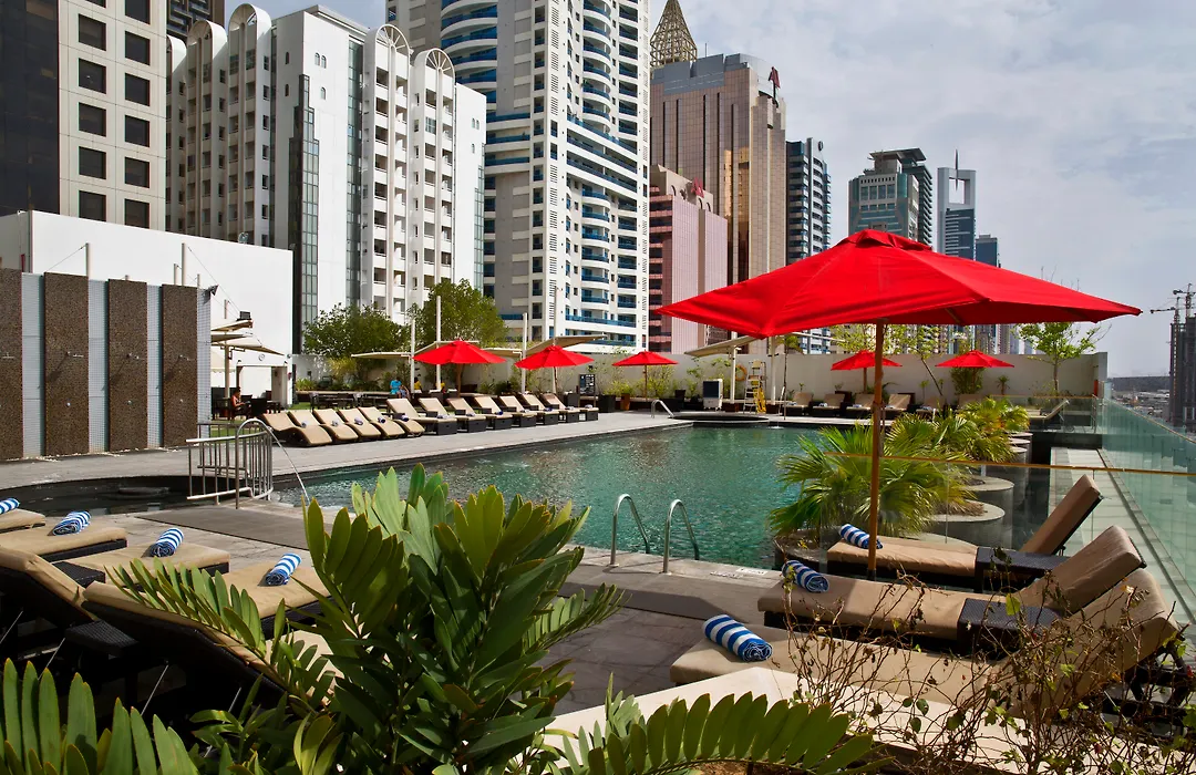 The Tower Plaza Hotel Dubai is a 5-star hotel rated 7.8/10 on Booking.com, featuring spacious accommodations with stunning views. Amenities include a variety of dining options, a rooftop terrace, and event spaces in the Trade Centre district.