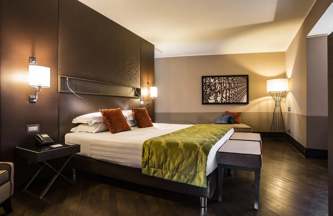 For relaxation, guests can visit the small fitness room or enjoy the rooftop terrace. The hotel's design emphasizes elegant Italian craftsmanship and comfort, making it a serene retreat after a day of exploring.