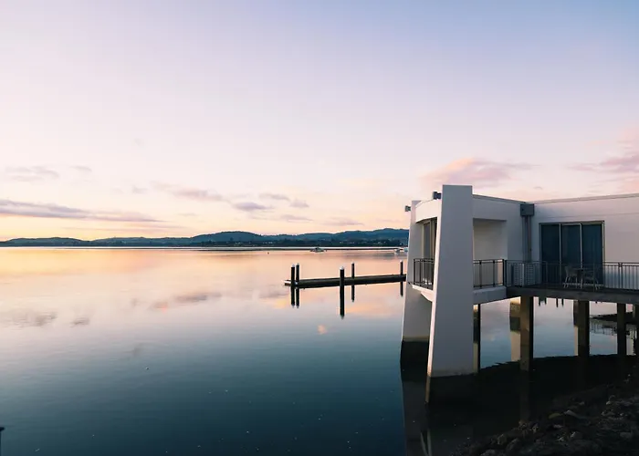 Trinity Wharf Tauranga is a 5-star hotel and conference venue offering panoramic water views from its over-water location. Guests can enjoy amenities such as an infinity edge swimming pool, hotel gym, and a full-service restaurant. This Tauranga hotel is designed to deliver a premium experience for both leisure and business travelers.