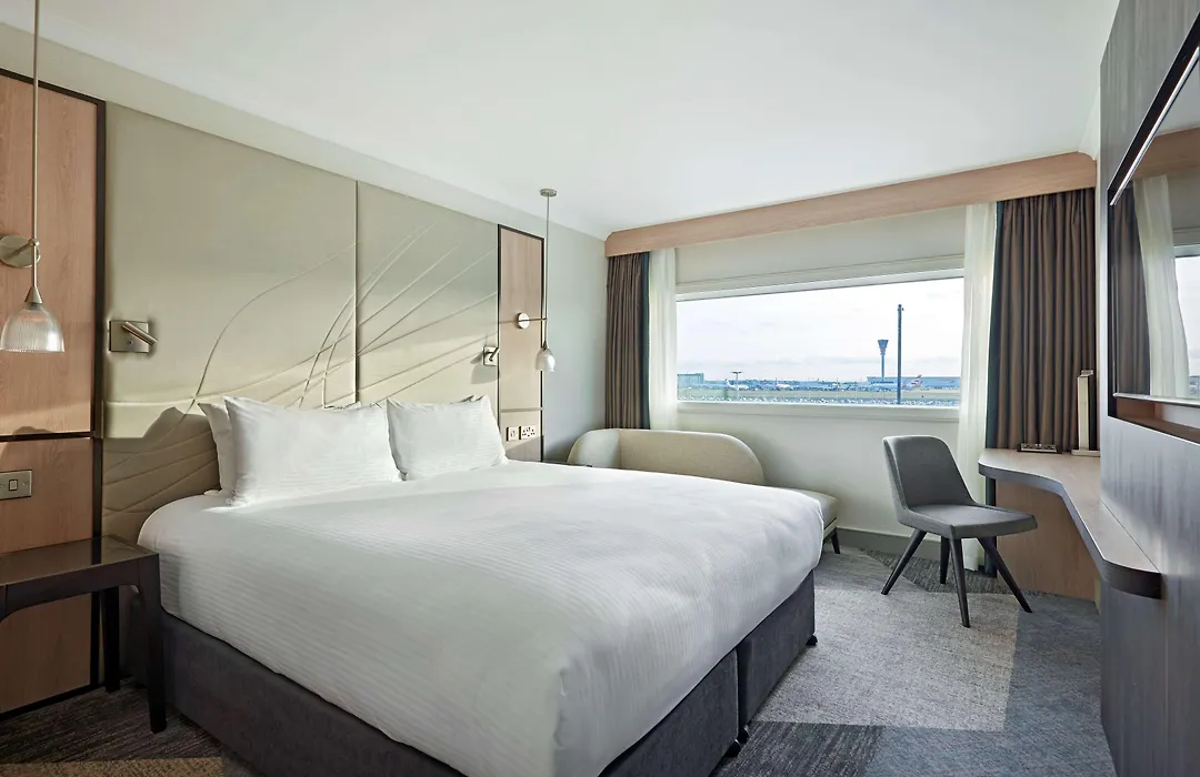 The hotel features a fitness center with cardio and strength-training equipment. Public transport options include nearby bus stops, providing access to Heathrow Central Bus Station and the subway.