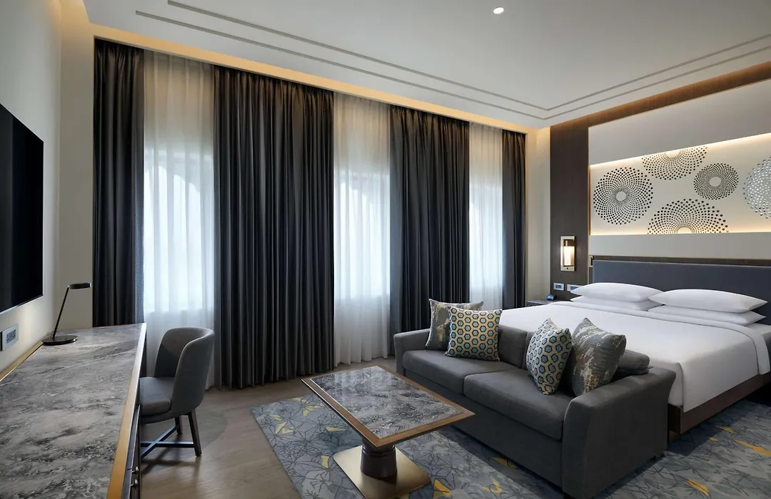 Rooms at Hyatt Regency Jaipur Mansarovar are equipped with air conditioning, a flat-screen TV with cable channels, and a private bathroom with complimentary toiletries. Some rooms include a balcony, offering additional outdoor space.