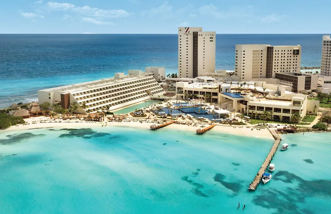 Hyatt Ziva Cancun All-Inclusive (Adults Only) features 547 rooms with premium bedding and stocked minibars. This 5-star Cancun hotel offers direct beach access and several pools, including cascading pools overlooking the sea, providing a luxurious experience for adults.
