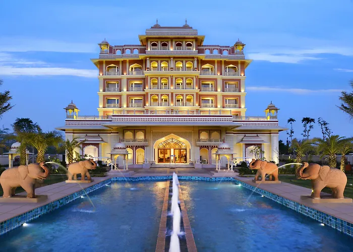 Indana Palace Jaipur, a 4-star hotel rated 8.2/10 on Booking.com, features luxurious accommodations with a heritage architecture feel and modern amenities. The hotel offers a signature wedding venue, spa services, and a variety of dining options for guests.