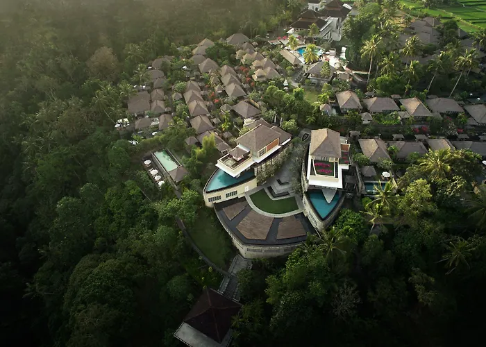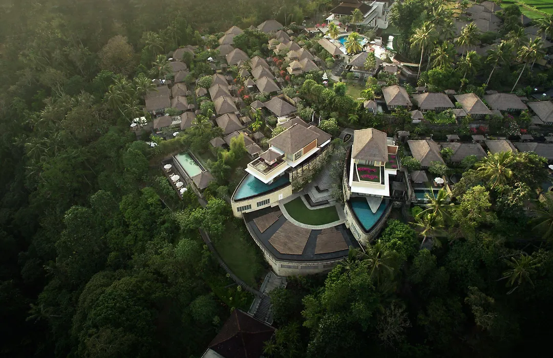 Kamandalu Ubud features luxurious accommodations situated amidst the lush green hills, offering an exclusive experience with a focus on natural beauty and contemporary design. This five-star Ubud (Bali) hotel provides amenities such as an infinity pool, award-winning dining, and comprehensive spa services.