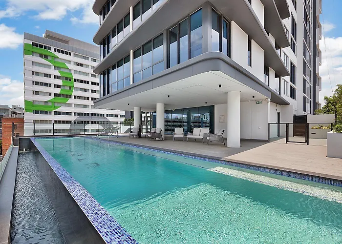 Kooii Apartments, a 4-star Brisbane hotel with an 8.7/10 rating on Booking.com, features modern apartments equipped with essential amenities. This property includes a sauna, fitness center, and an infinity pool for relaxation.