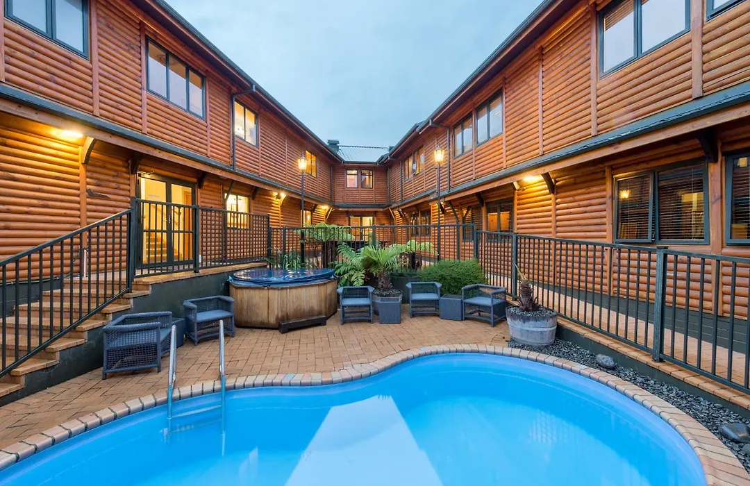 Lakefront Lodge Taupo features a heated pool and spa for guest relaxation. The lodge is located just a 15-minute walk from Lake Taupo's town center, where visitors can engage in activities such as trout fishing and water sports.