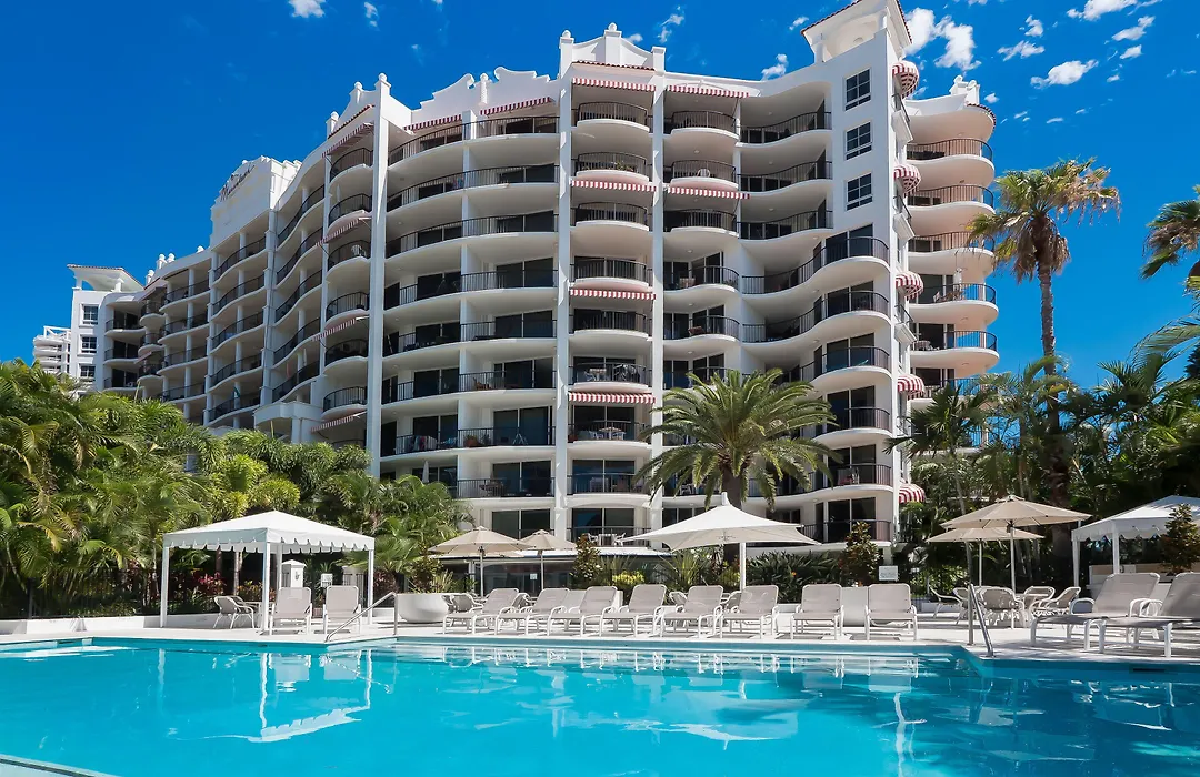 Marrakesh Apartments, a 4-star Gold Coast hotel rated 7.8/10 on Booking.com, features fully self-contained accommodations with spacious living areas and private balconies. Amenities include multiple pools, a fitness center, and an organic café.