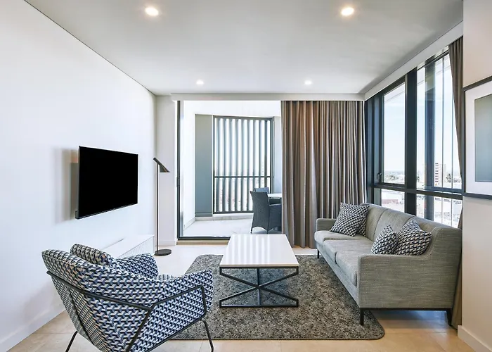 Meriton Suites Liverpool offers luxurious apartment-style accommodations with upmarket amenities. This 5-star hotel features a heated indoor pool, a fitness center, free WiFi, and a 24-hour front desk. Guests can select from studio or multi-bedroom suites equipped with modern conveniences.
