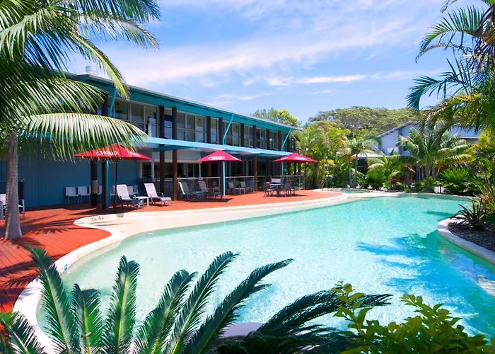 Mobys Beachside Retreat features environmentally friendly beach houses surrounded by tropical gardens. This 4-star Blueys Beach hotel offers a heated lagoon pool, spa, and on-site dining at Sips Restaurant overlooking the pool.