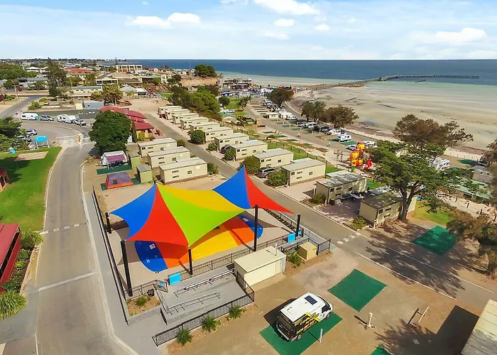 Moonta Bay Holiday Park is a 4-star family-friendly accommodation featuring a garden and a shared lounge. Guests have access to free WiFi, free private parking, and a shared kitchen.