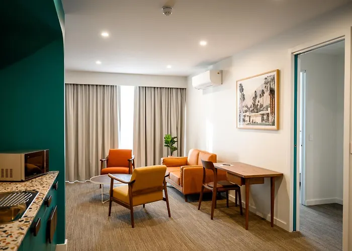 Leisure facilities encompass the outdoor swimming pool and fitness center. The hotel is a short distance from key attractions, including Largs Beach at 2 km and the South Australian Maritime Museum at 6 km.