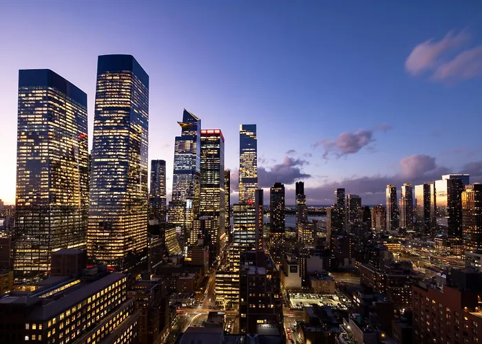 Leisure facilities include a fitness center with modern equipment and a 39th floor Sky Lounge providing panoramic views of the Empire State Building and Statue of Liberty. Business meetings and gatherings can be conducted in versatile event spaces, accommodating various group sizes.