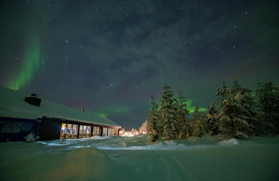 Northern Lights Village Levi features unique Aurora Cabins that offer a view of the Northern Lights through a glass roof. This 4-star Levi hotel provides numerous winter activities and amenities including a sauna and restaurant.