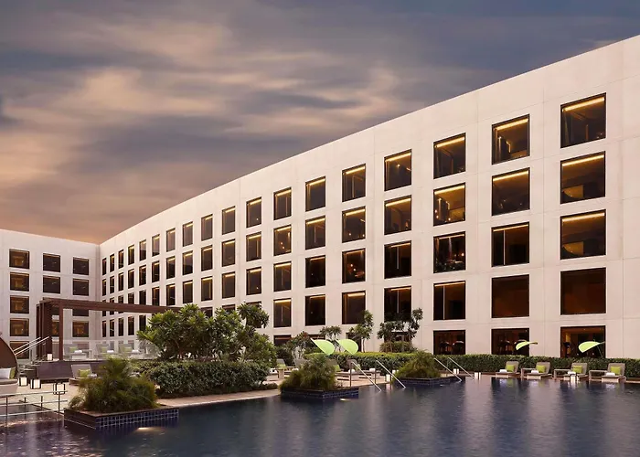 Novotel New Delhi Aerocity is conveniently located just 600 meters from Delhi Aero City and 5 km from Delhi International Airport. Nearby transport includes the Delhi Aero City Station, which is an 11-minute walk away, and various bus stations for easy access to the city.