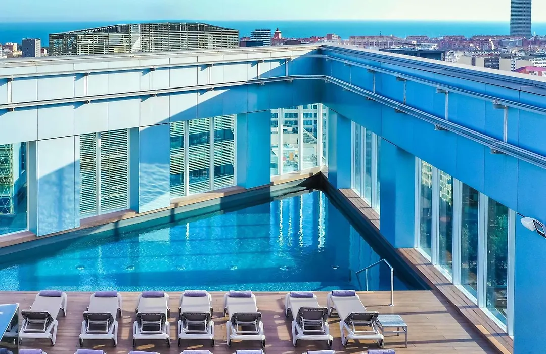 Novotel Barcelona City, a 4-star hotel rated 8.2/10 on Booking.com, offers a modern lodging experience with panoramic city views. The property features a gourmet bar serving tapas, wines, and cocktails, plus a seasonal outdoor pool and a free gym.