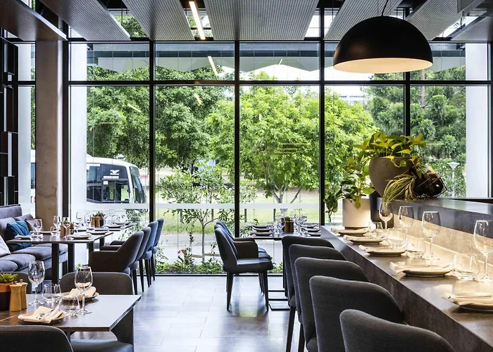 Novotel Brisbane South Bank features Spice Central Kitchen & Bar, which serves a diverse menu emphasizing local ingredients. A full buffet breakfast with fresh bircher muesli is available, and in-room dining is offered for added convenience. Nearby dining options include Merriweather and Bacchus, located within 1 km.