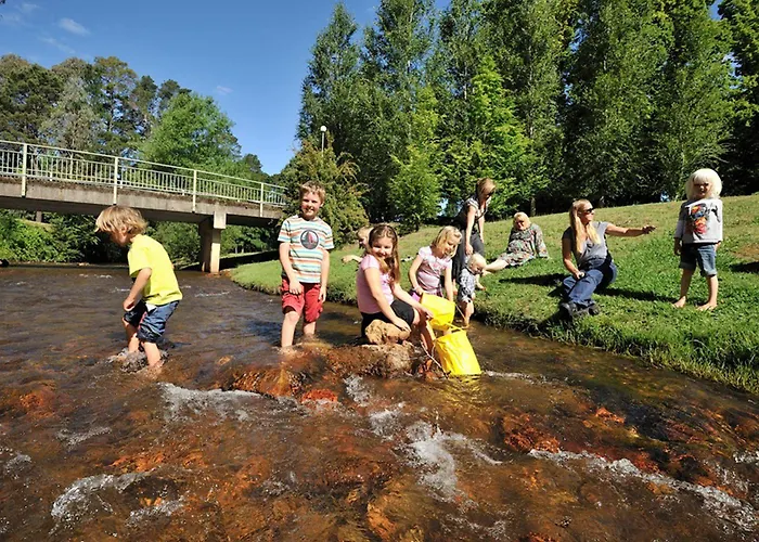 Nrma Bright Holiday Park offers access to a range of family-friendly accommodations, including two-bedroom cabins with kitchen facilities and air conditioning. Guests can enjoy an outdoor swimming pool, a children's playground, and a shared kitchen. This 4-star Bright hotel has an overall Booking.com rating of 8.5/10.