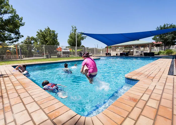 Nrma Dubbo Holiday Park offers a family-friendly environment with various outdoor activities. This 4-star Dubbo hotel features an outdoor pool, children's playground, and air-conditioned accommodations, some equipped with kitchenettes for convenience.