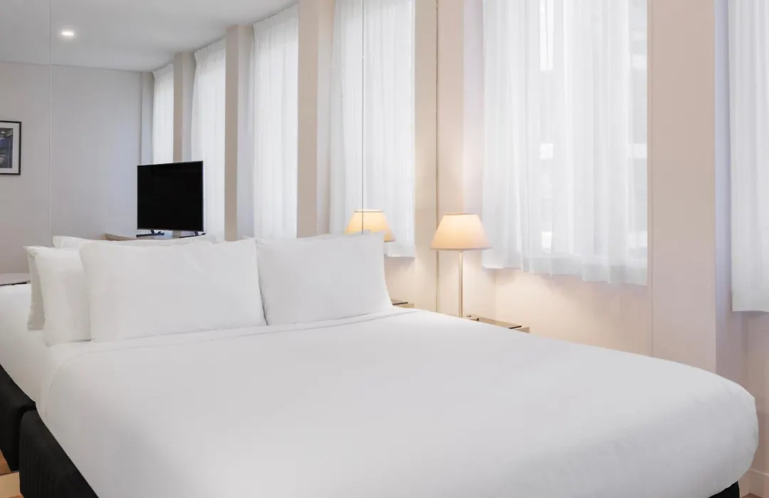 Rooms at Oaks Melbourne On Collins Suites range from modern studio apartments to spacious rooftop apartments on the 19th floor, all equipped with full kitchens, dedicated work desks, and inclusive Wi-Fi. The contemporary studio apartments boast luxury amenities and scenic views of lively Collins Street.