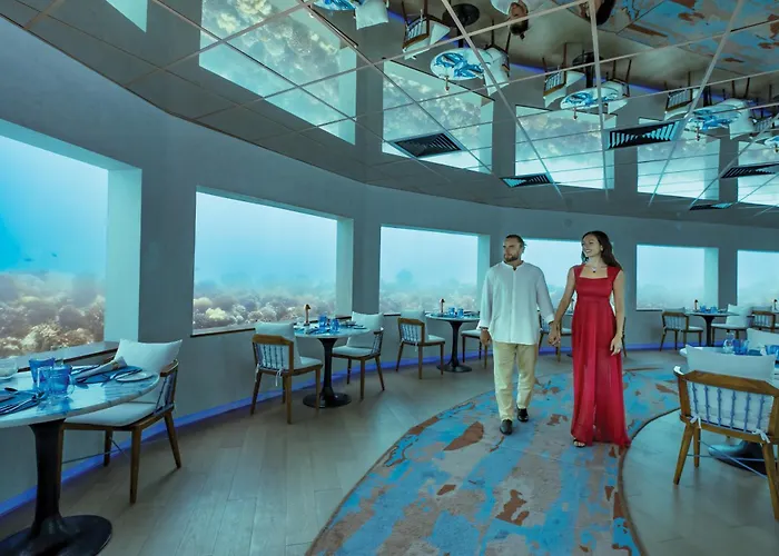 On-site dining includes a restaurant that serves seafood, local and international cuisine, complemented by options for buffet or American breakfast. Guests can also indulge in underwater dining at Only Blu.