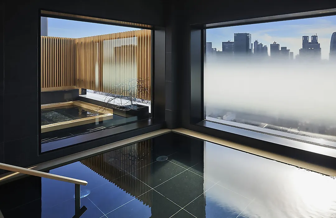 The hotel features a restaurant called Kakatojo serving seasonal, contemporary Japanese cuisine, including teppanyaki and tempura presented in curated ceramics. Guests enjoy breakfast served in tiered wooden jubako boxes.