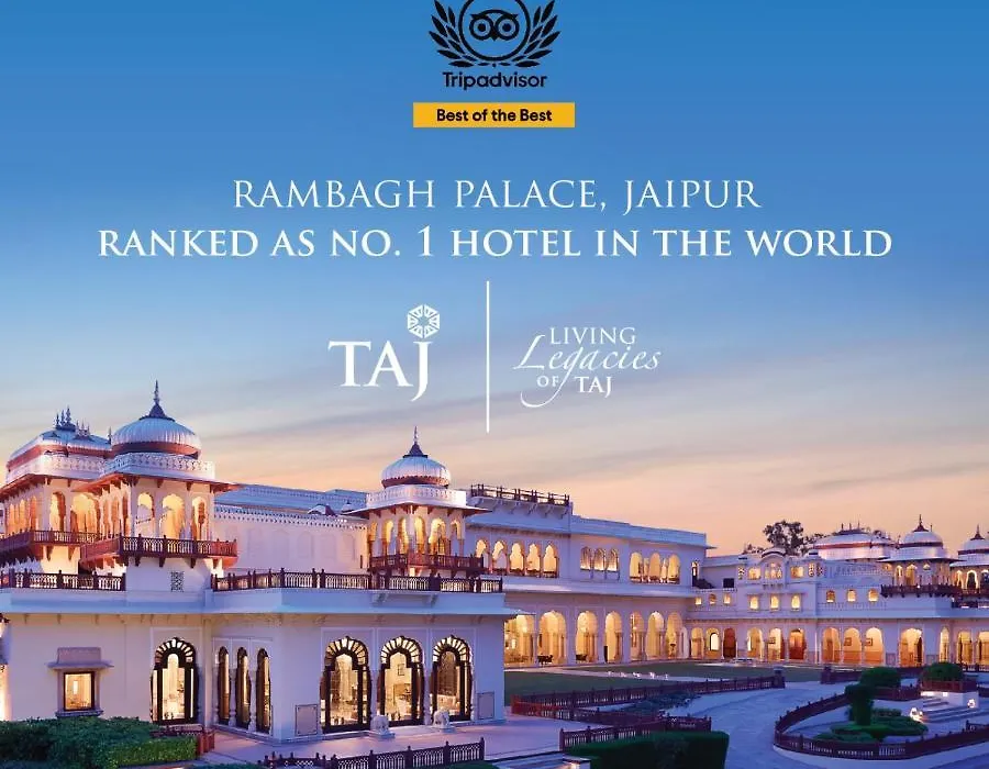 Rambagh Palace, rated 9.7/10 on Booking.com, features a luxurious experience in a heritage setting with extensive gardens and a royal history. This 5-star hotel includes a full-service spa, multiple dining options, and uniquely styled rooms and facilities.